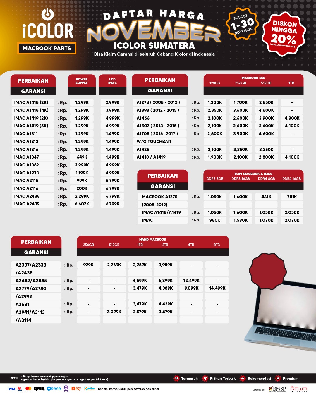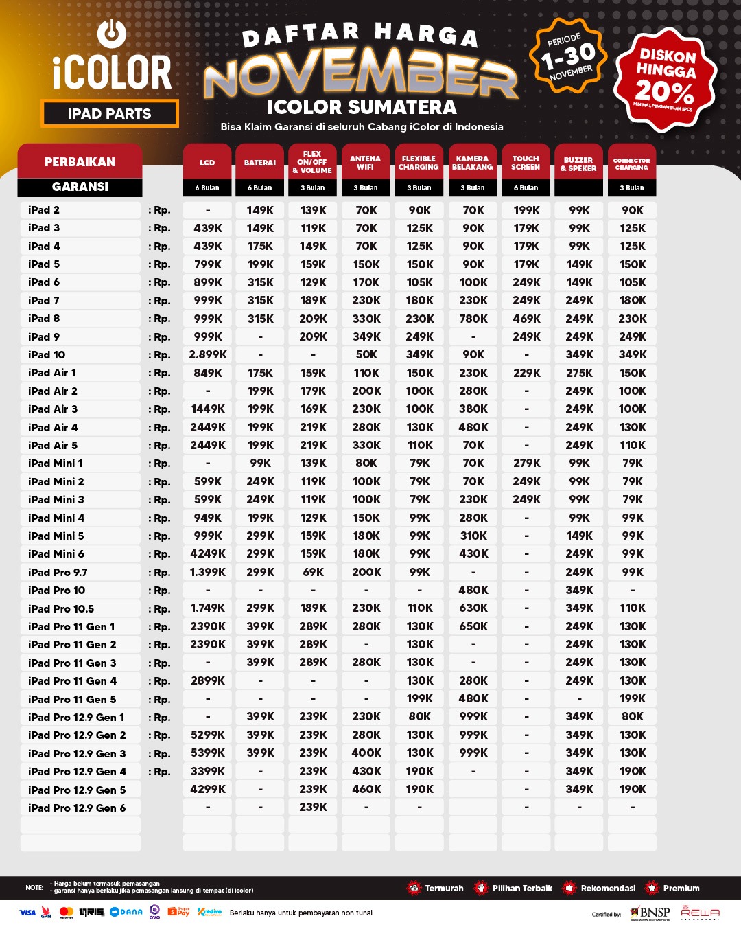6. Garansi berlaku di seluruh cabang iColor dan terhitung sejak tanggal pen-gambilan perangkat.