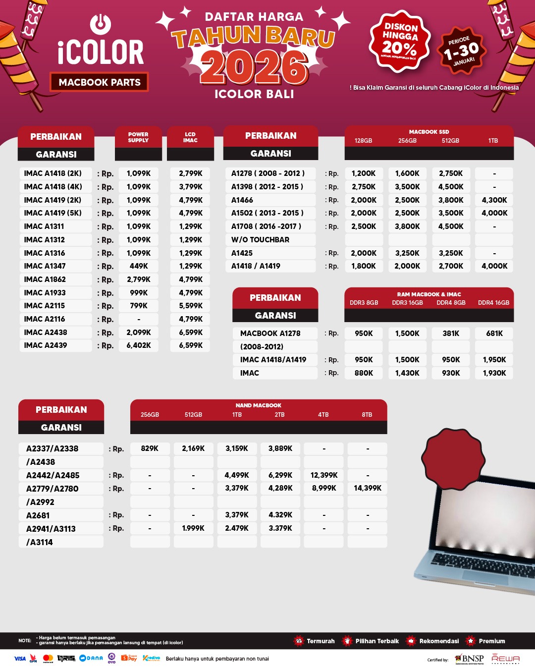 6. Garansi berlaku di seluruh cabang iColor dan terhitung sejak tanggal pen-gambilan perangkat.
