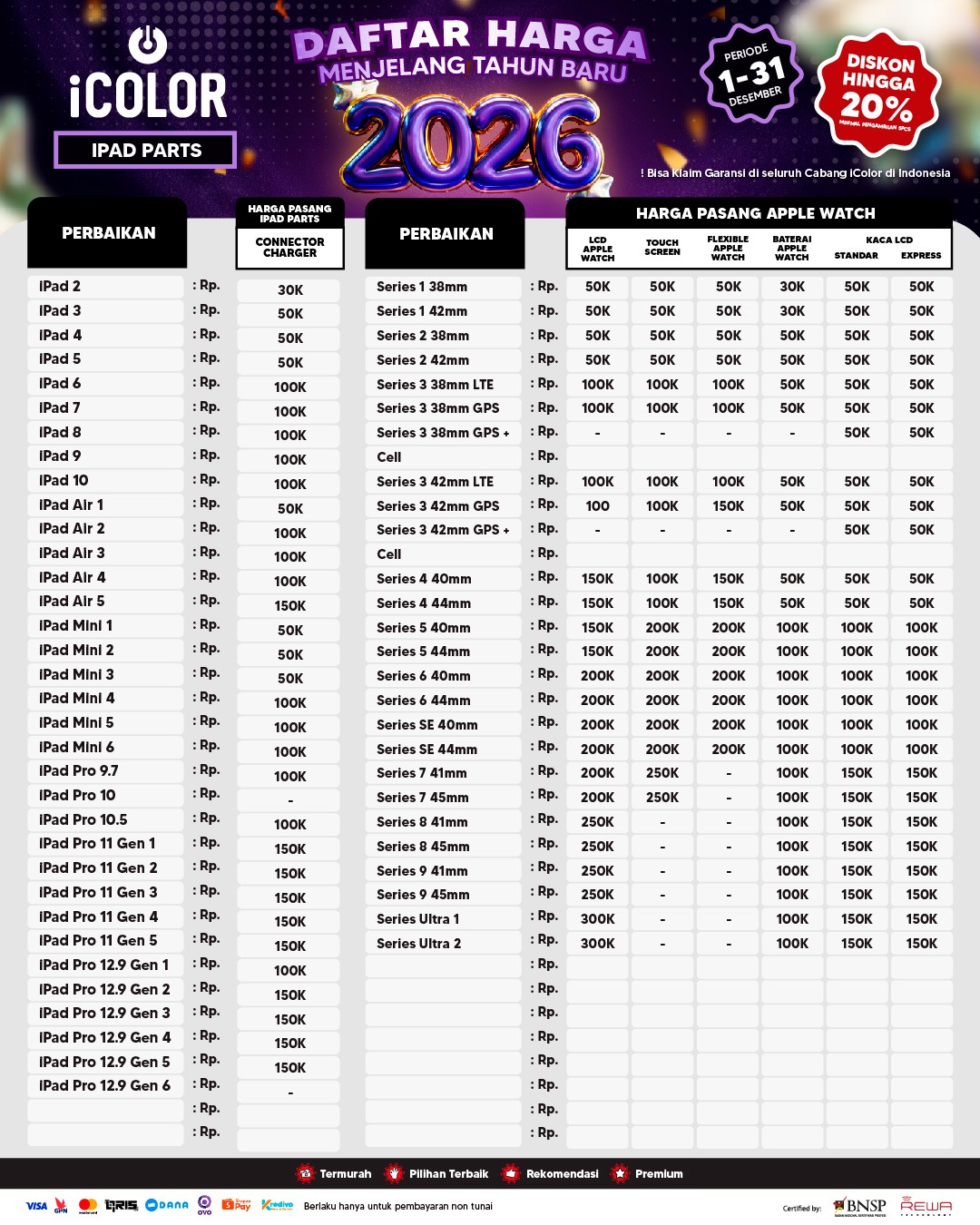 HARGA JASA PEMASANGAN DI STORE ICOLOR
