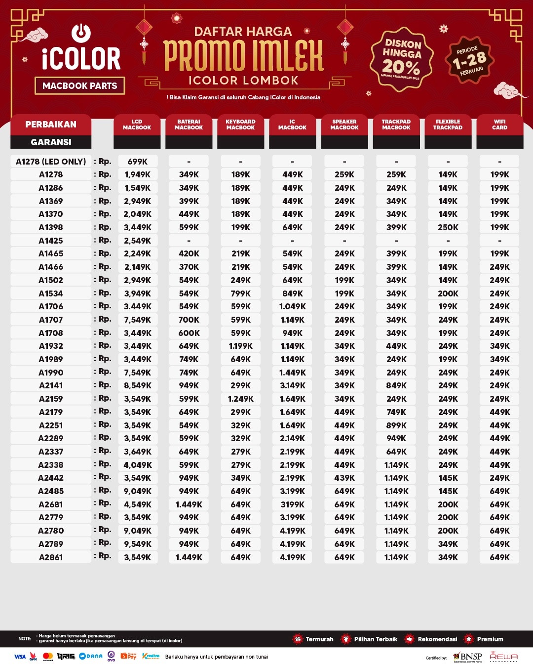SPESIAL PRICE ICOLOR LOMBOK FEBRUARI 2026