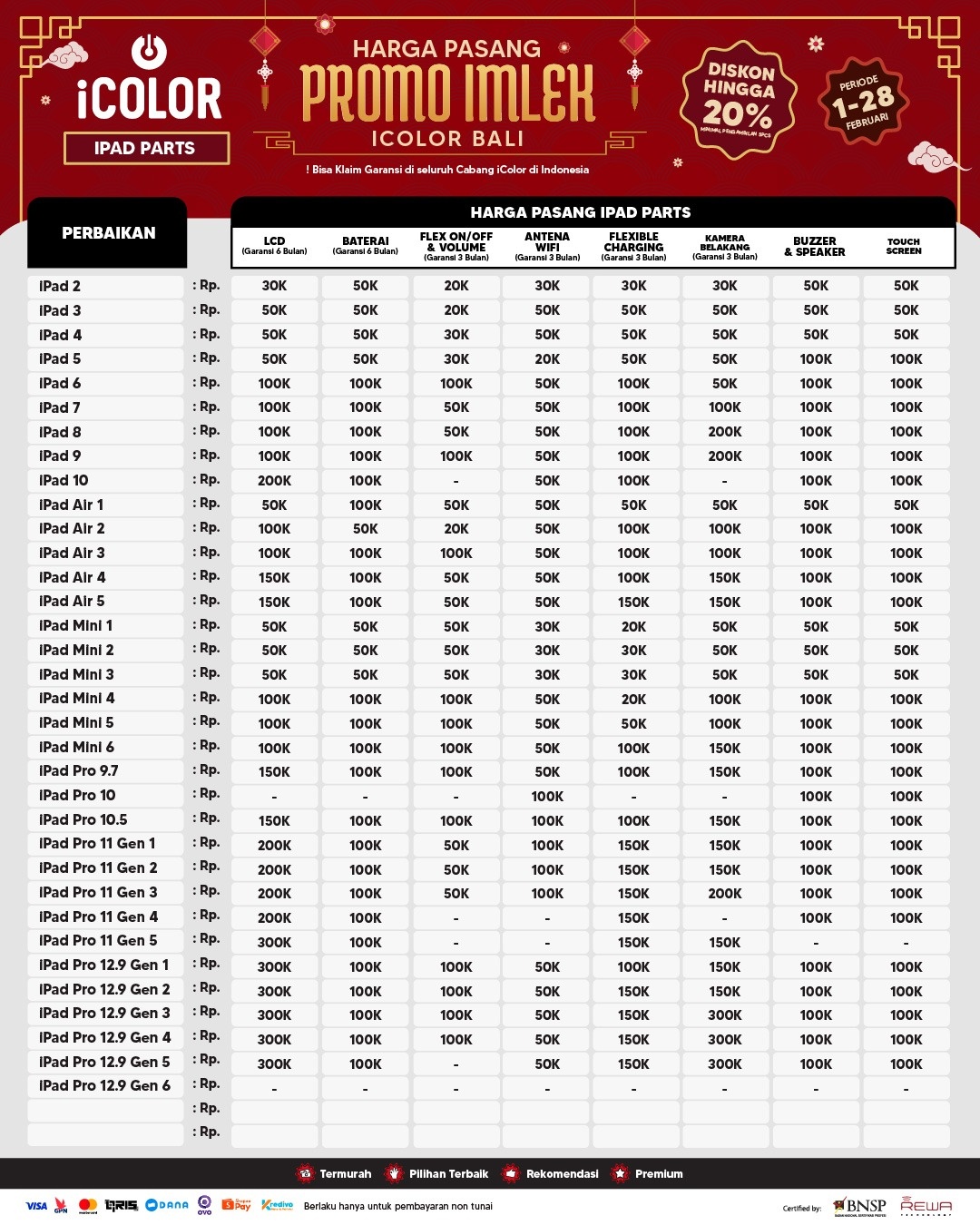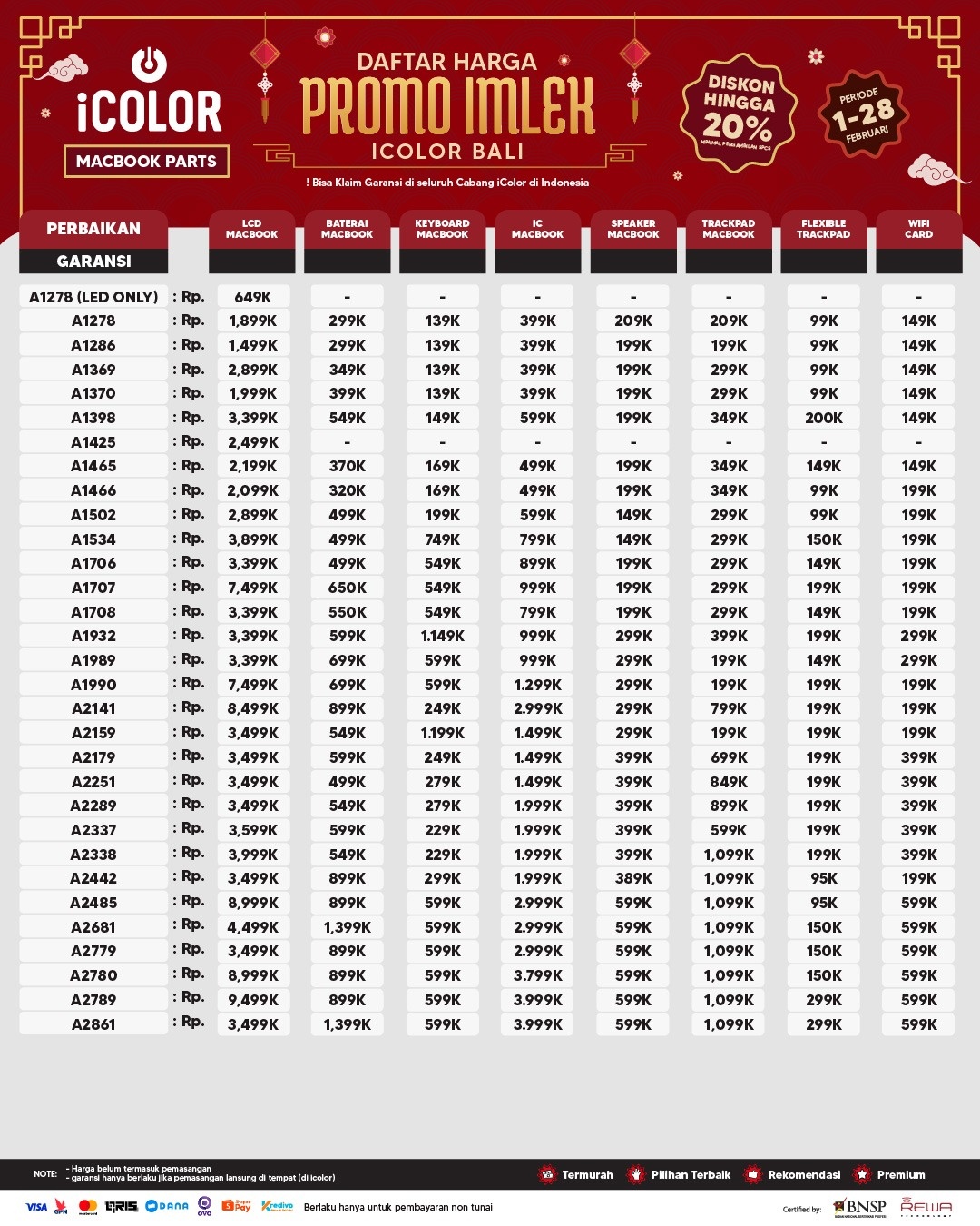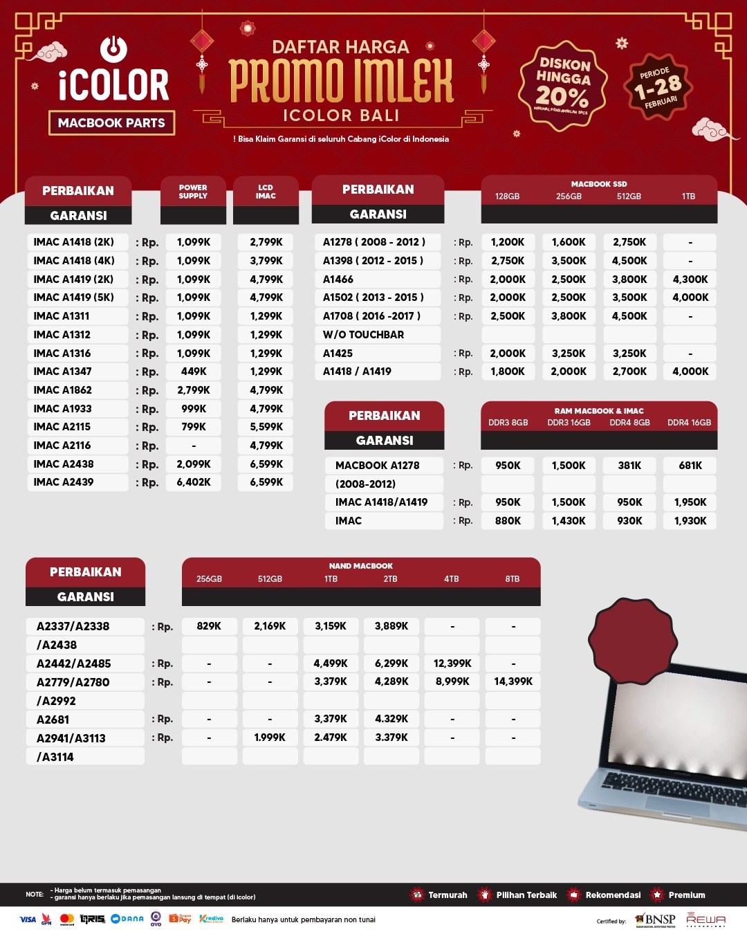 6. Garansi berlaku di seluruh cabang iColor dan terhitung sejak tanggal pen-gambilan perangkat.