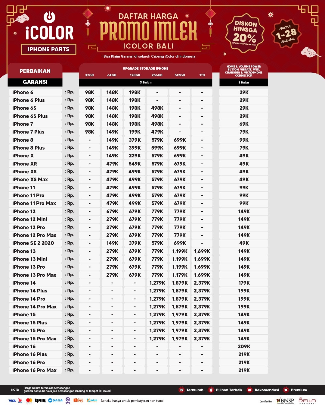 6. Klaim Garansi tidak berlaku jika Baterai Health di bawah 85% atau "Service" lebih dari 14 hari pasca perbaikan.