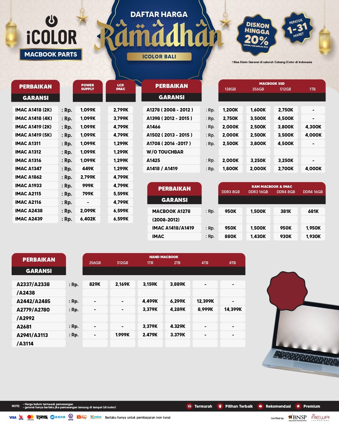 6. Garansi berlaku di seluruh cabang iColor dan terhitung sejak tanggal pen-gambilan perangkat.